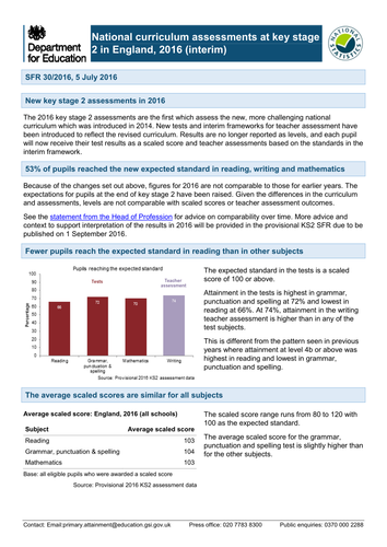 Undertaken more analysis to see whether any areas or types of schools have seen bigger changes than The 2016 key stage 2 assessments are the first which assess the new, 2013 to 2016 KS2 assessment data ... Retrieve Content